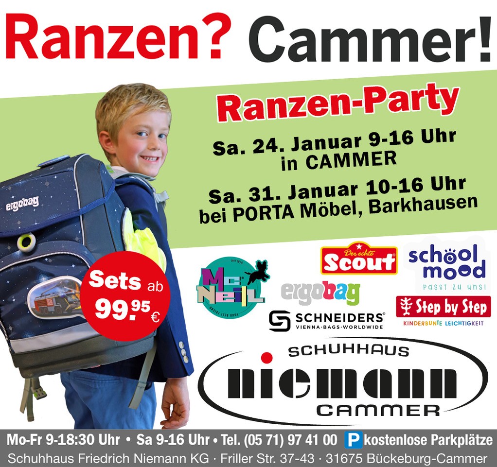 Die Einschulung rückt näher – und damit auch die Frage nach dem passenden Schulranzen. Ein guter Ranzen sollte nicht nur optisch gefallen, sondern vor allem ergonomisch überzeugen und perfekt sitzen. Um Familien die Auswahl zu erleichtern, veranstaltet Schuhhaus Niemann auch in diesem Jahr wieder die beliebte Ranzen-Party – mit großer Markenauswahl, fachkundiger Beratung und attraktiven Angeboten.